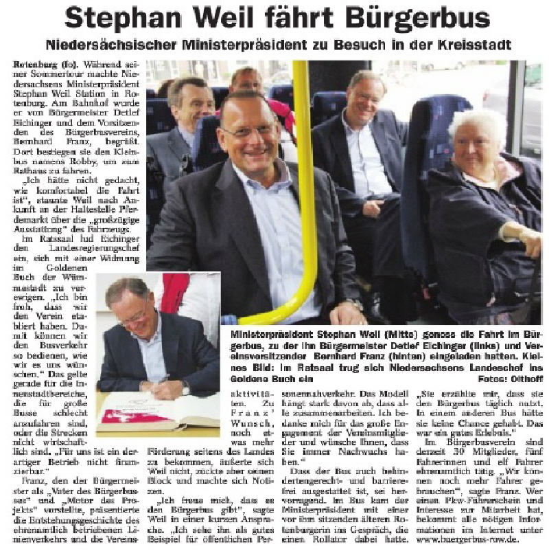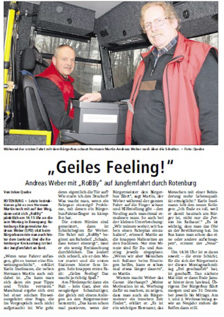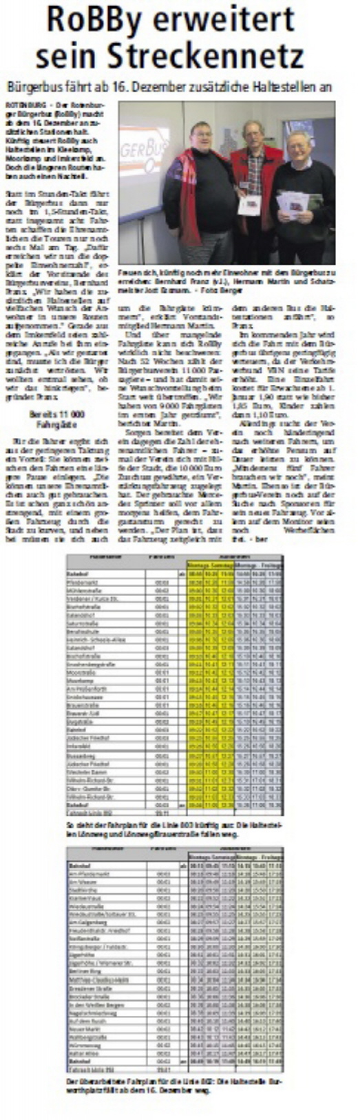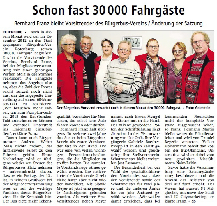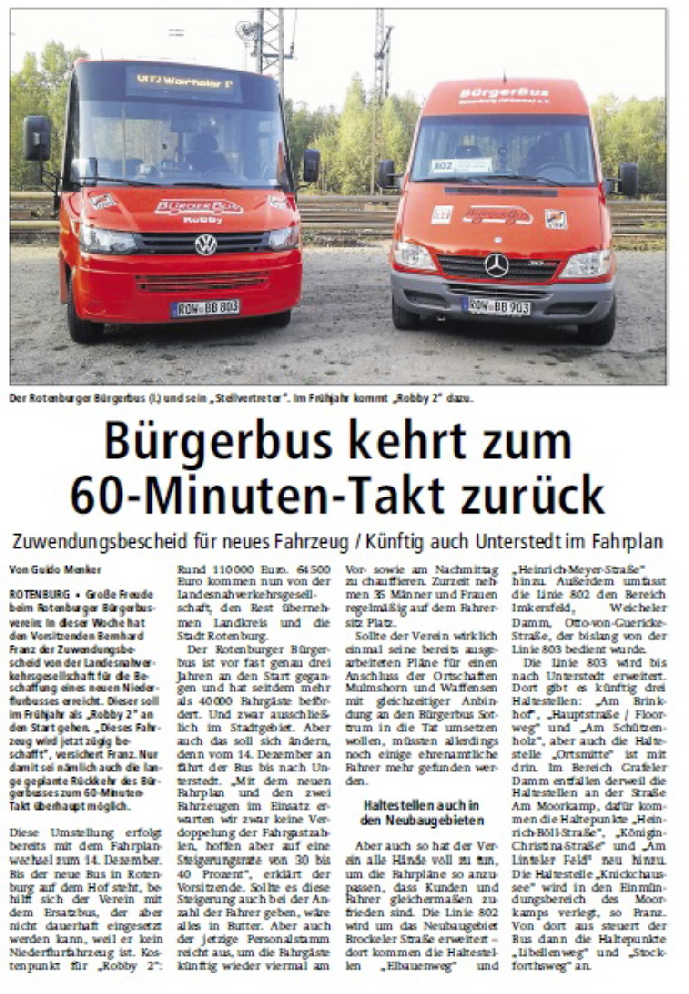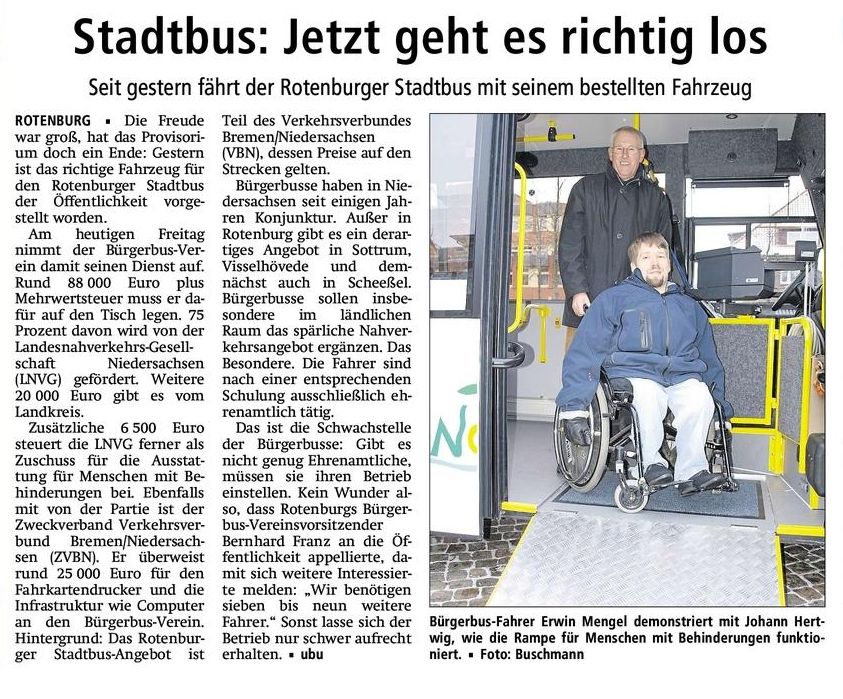 Unser Fahrgast Nr. 33.333 ist Frau Traute Wätje aus Rotenburg. Frau Wätje nutzt den BürgerBus regelmäßig, um zu Ihrer Schwester in den Berliner Ring zu fahren.