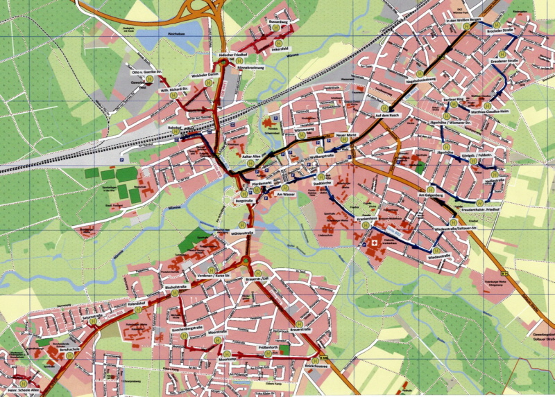 Die Linie 802 führt vom Bahnhof über den Pferdemarkt, Am Wasser, Stadtkirche zum Krankenhaus, dann über die Wiedaustraße, Soltauer Straße, Am Galgenberg, Freudenthalstraße - Friedhof, Neißestraße, Königsberger - Fuldastraße, Jägerhöhe, Wismarer Straße, Berliner Ring, Matthias-Claudius-Heim, Dresdner Straße, Elbauenweg, Heinrich-Meyer-Straße, Brockeler Straße, In den Weißen Bergen, Nagelschmiedsweg, Auf dem Rusch, Am Neuen Markt, Wallbergstraße, Wallbergstr. / Hemphöfen, Ringstraße, Nödenstraße / Ronolulu, Aalter Allee zum Bahnhof und anschließend über "Jüdischer Friedhof" in das Imkersfeld, Bussardweg, Weicheler Damm, Wilhelm-Richard-Straße, Otto-von-Guerike-Straße (Obi) und dann wieder zum Bahnhof.Die letzte Fahrt in den Bereich Imkersfeld und Weicheler Damm wird nur gefahren, wenn sich Fahrgäste für diesen Bereich im Bus befinden (nur Ausstieg).